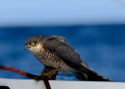 Eine Stunde später bekommen wir weiteren Besuch: diesmal kommen 2 Wiesenpieper – und ein Sperber. Der schaut sich die Situation erst an, und sobald der erste Vogel abhebt jagt er diesen mit einer unglaublichen Wendigkeit. Bis…ja…nur noch der Sperber übrig ist.
