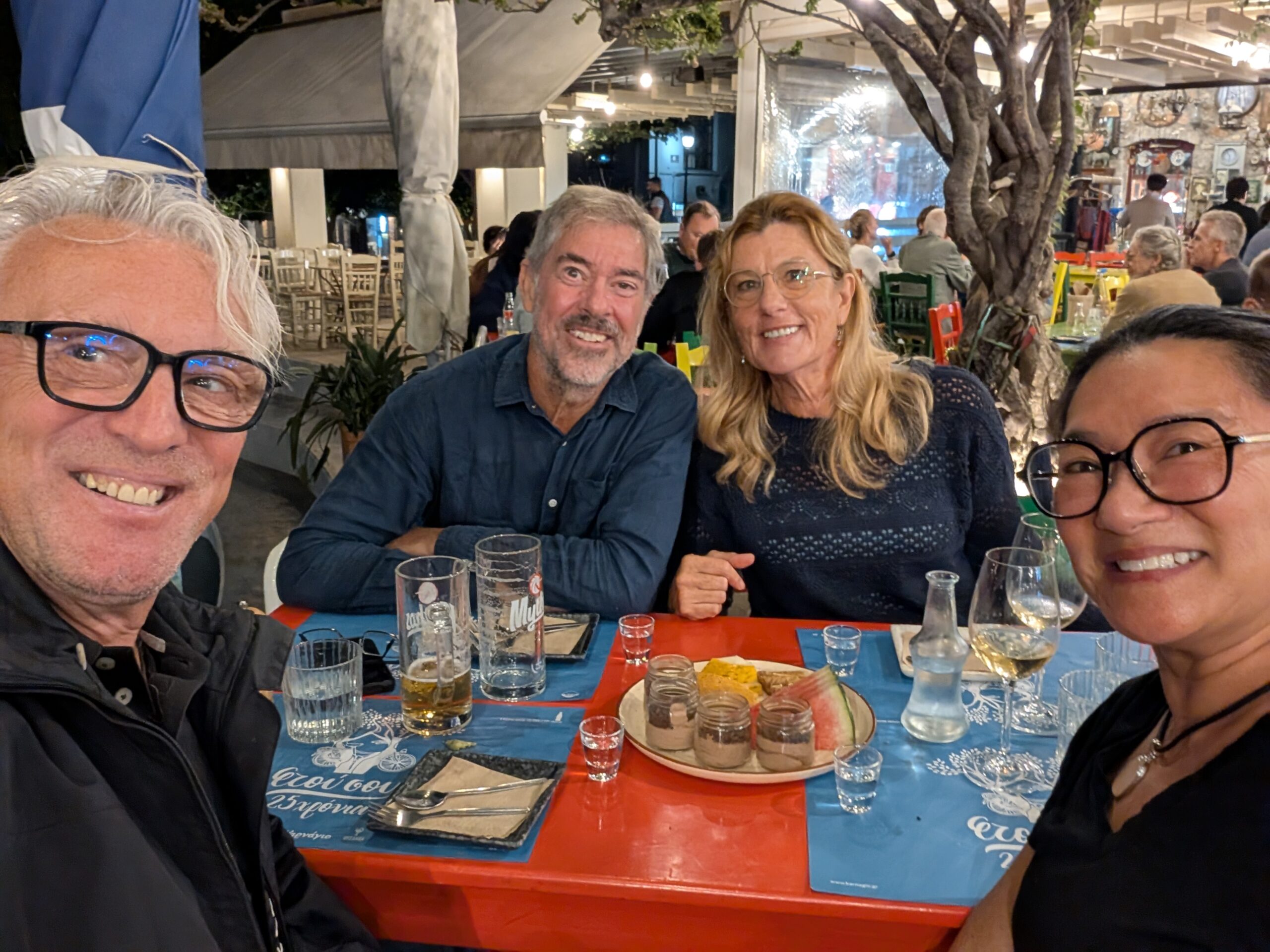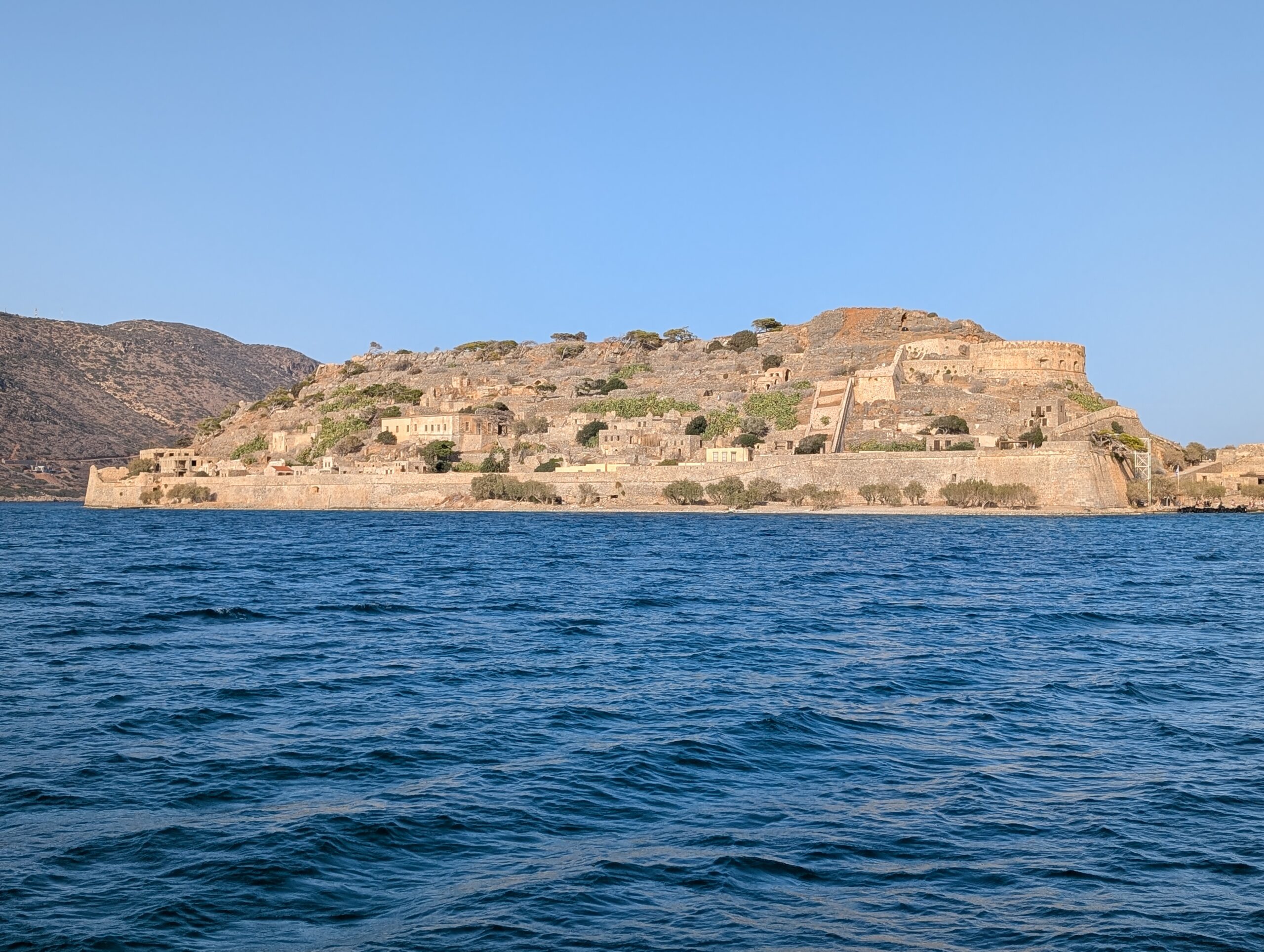 Am Abend treffen wir Rob und Fiona von der ‚La Flaneuse’ in der Stadt zum Essen. Es wird ein lustiger Abend – wir müssen ja zum Glück nicht noch ins Beiboot – und wir verabreden uns für den nächsten Tag in der Ankerbucht von Ormos Spinalonga, der wohl am besten geschützten Bucht auf Kreta. Hier liegt man auch bei Wind wirklich sehr entspannt!