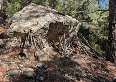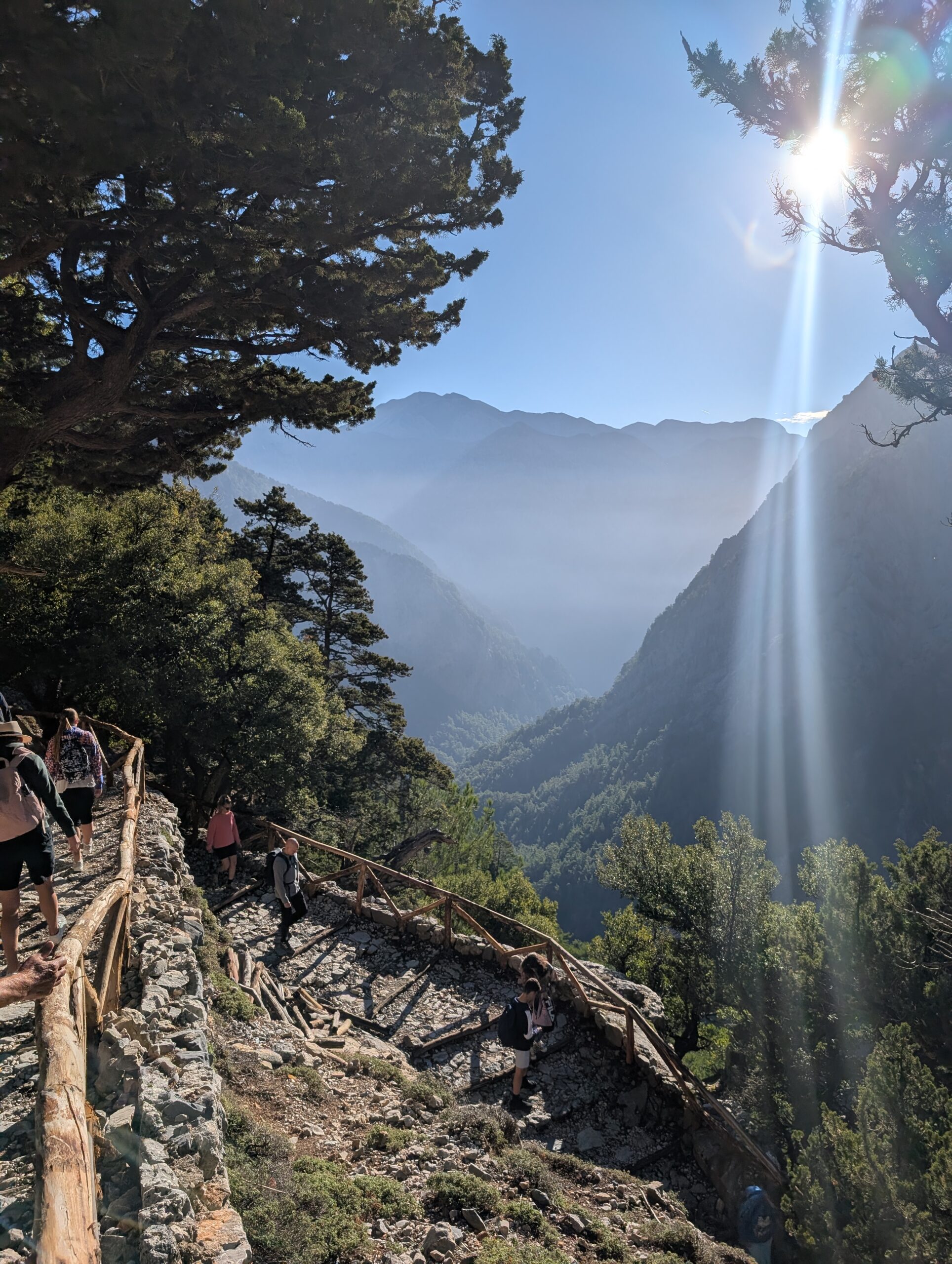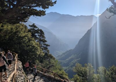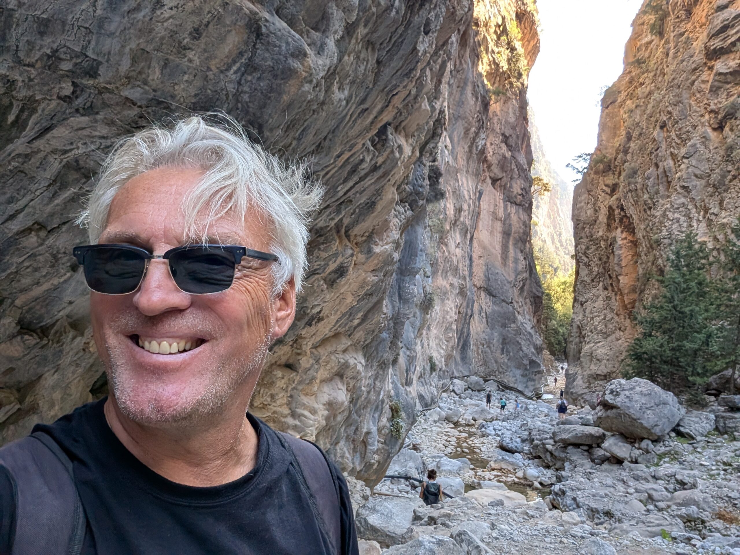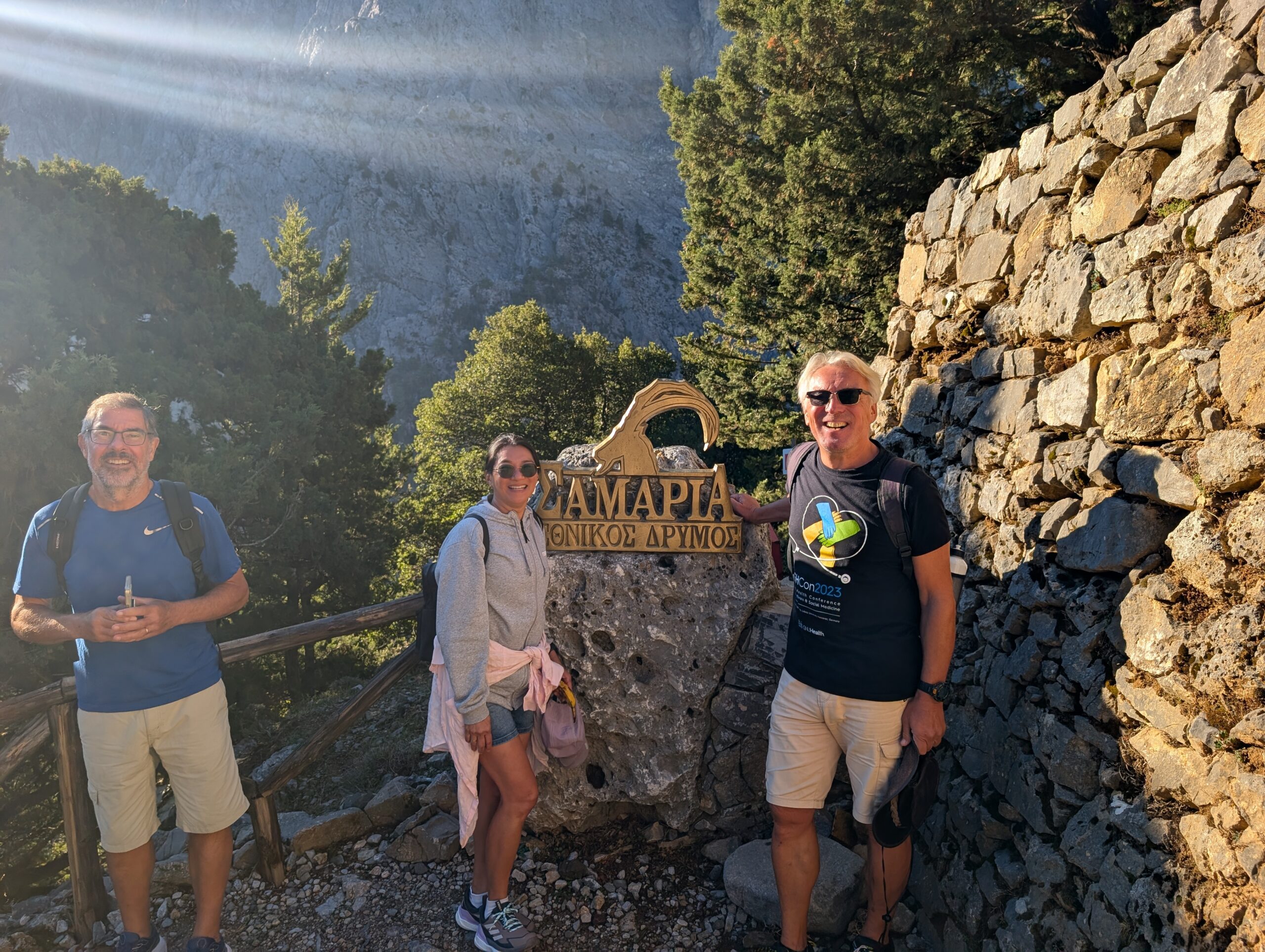 Wir bleiben ein paar Tage…eine Schneiderin vor Ort verpasst der Nationalen mal einen neuen Saum und einer Jacke einen neuen Reißverschluss. Und wir machen mit Rob und Fiona den Samaria-Gorge, eine Wanderung durch eine der längsten Schluchten Europas (17km). Mit dem Bus werden wir zum Startpunkt gebracht, der Einstieg ist steil und es geht über Stock und Stein. Für die ersten 6 km brauchen wir 2 Stunden…gegen Ende wird es flacher, an der schmalsten Stelle (die eiserne Pforte) ist die Schlucht nur 3m breit, aber 300m hoch. Im Winter und Frühjahr ist die Stelle unpassierbar – zu viel Wasser.