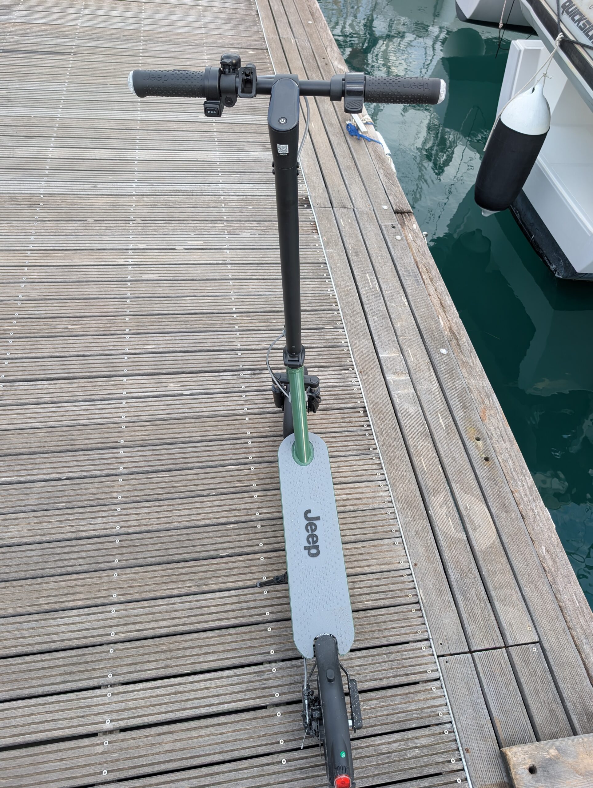 Wir nutzen den ‚Black Friday‘ um die Ausrüstung zu komplettieren: Neben einem Airfryer kommen auch zwei Elektroscooter an Bord. Die etwas kleinere und leichtere Ausführung, damit man sie noch in das Beiboot heben kann. Dass ‚Jeep‘ draufsteht war eher Zufall (obwohl ich fast 30 Jahre Jeep gefahren bin)