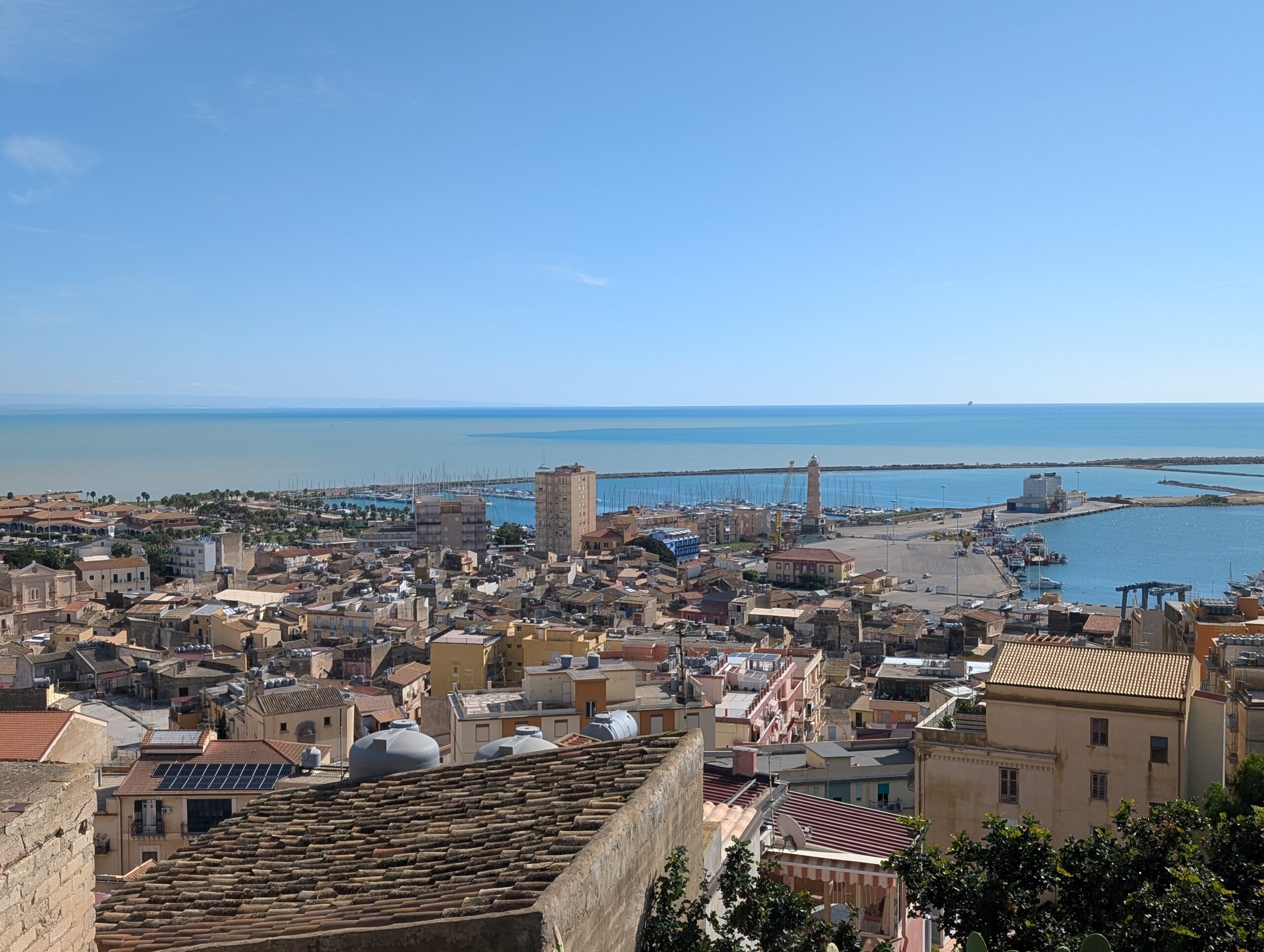 In Licata gibt es eine größere Winterlieger-Community, und Eva (TransOcean) hat freundlicherweise die Ladung Coppercoat für mich angenommen – das gibt es in Tunesien, wo es im Winter verarbeitet werden soll, nämlich nicht. Der Ort hat einiges zu bieten, kurze Wege bis zum Supermarkt, nette Kneipen und Restaurants (Achtung, Happy Hour!), nur leider auch astronomische Preise: 180€/Nacht. Im November! So bleiben wir trotzdem drei Nächte um auszuklarieren, und legen uns dann neben den Hafen vor Anker. Dank leichter Winde von Nord und West sehr ruhig und entspannt.