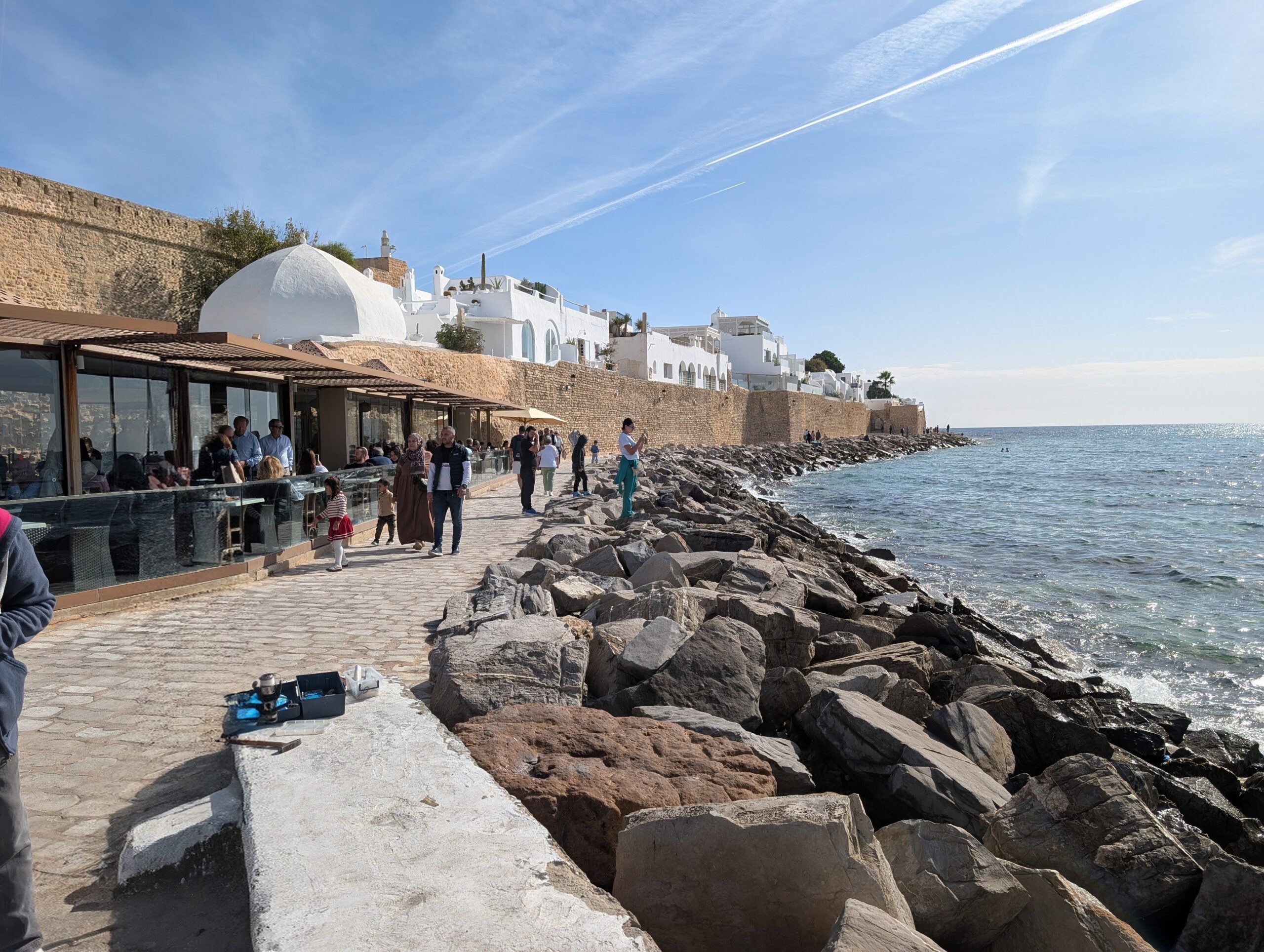 Gegen 13:00h legen wir am nächsten Tag in Hammamet an. Polizei und Hafenmeister sind kein Problem, der Zoll an sich auch nicht, bei der Inspektion des Bootes fragen sie aber ganz frech nach ‚Geschenken‘. Das soll man ja nicht fördern, aber ein offensichtliches ‚Nein‘ ist auch nicht diplomatisch. Ich finde eine Miniflasche Killepitsch, die sie dann aber ablehnen. Nun denn.